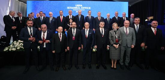 Cumhurbaşkanı Erdoğan’ın konuşmasının ardından tüm katılımcılar kurdelenin kesilmesi sonrasında hatıra fotoğrafı için sahneye çağrıldı.